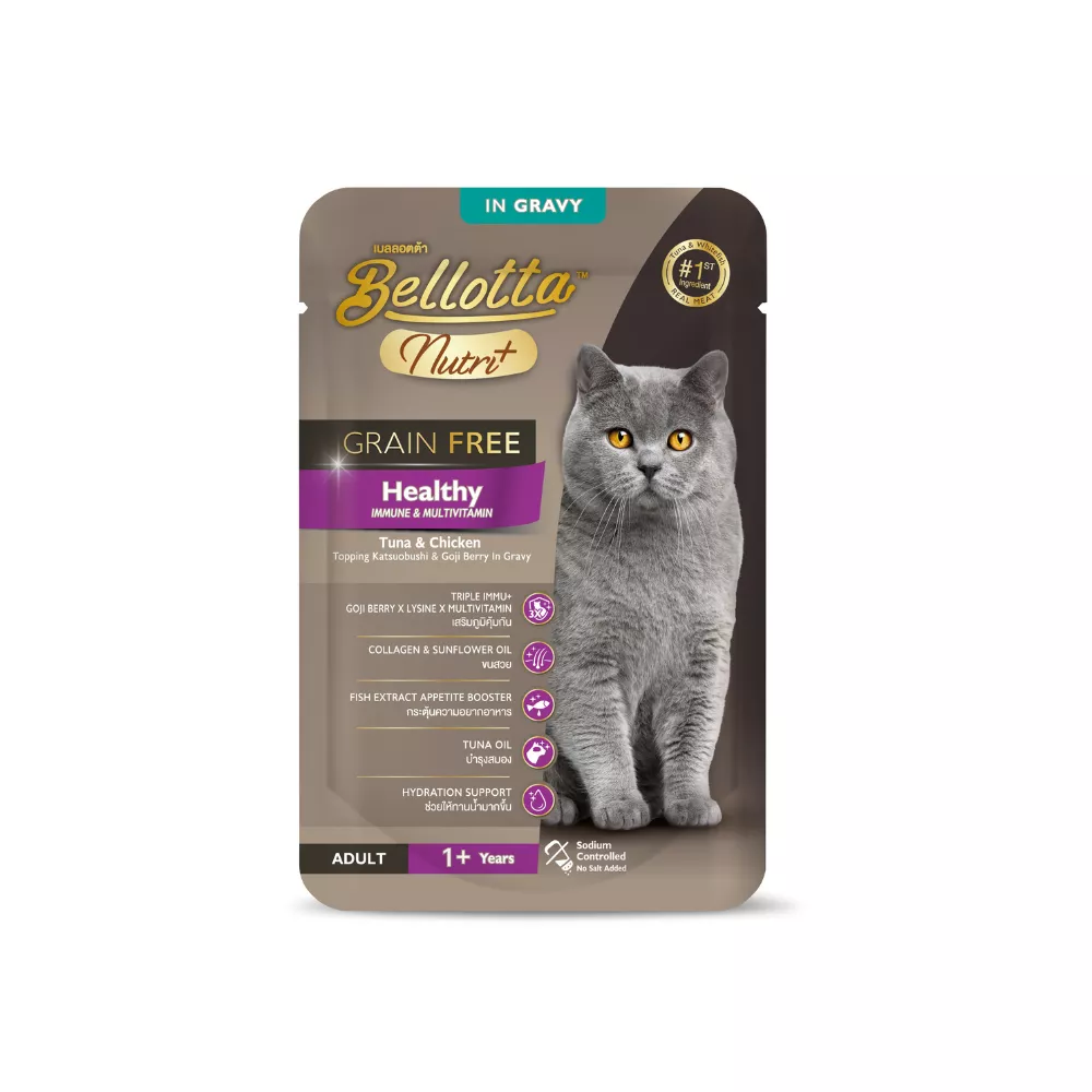 Bellotta Nutri Plus Grain Free Healthy Pouch with Tuna and Chicken in Gravy 70gm