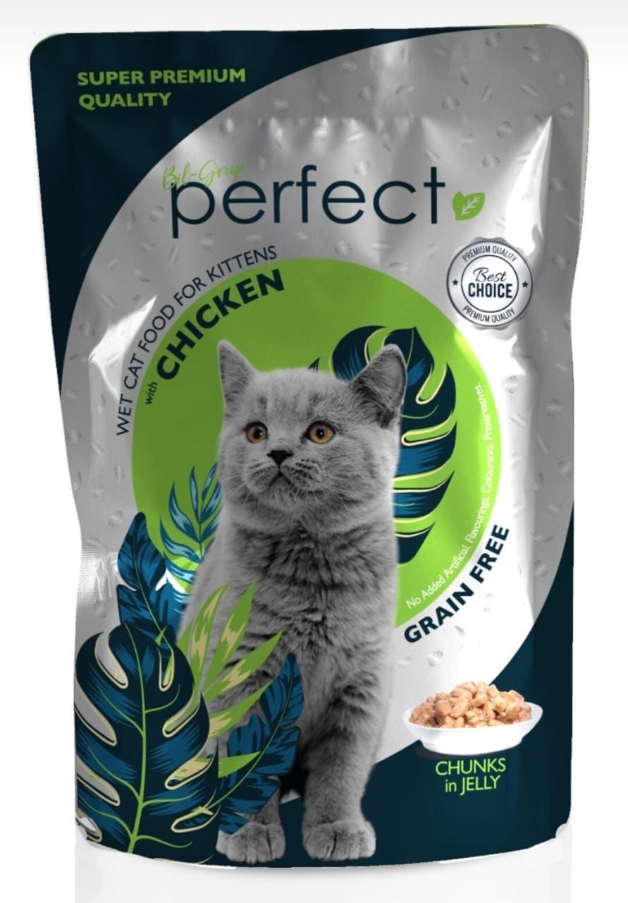 Perfect Wet Cat Food for Kittens with Chicken is a grain-free, super-premium wet food that comes in chunks in jelly. It is made with no artificial colors, flavorings, or preservatives, perfect for your growing kitten.